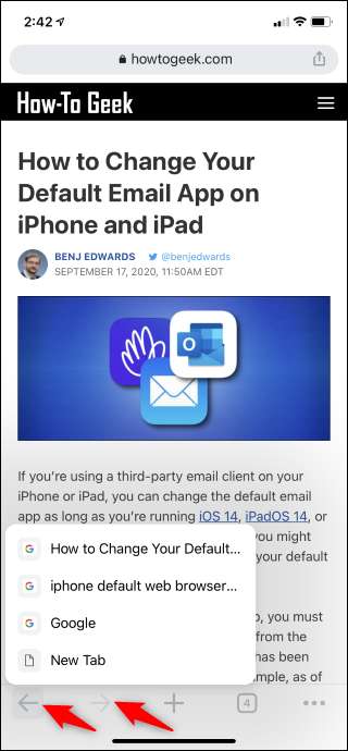 Esta característica también se encuentra en Safari en iPhone, por lo que es posible que ya esté familiarizado con él. Sin embargo, puede volver y reenviar con gestos en lugar de tocando los botones de flecha hacia atrás y hacia adelante en la barra de herramientas.