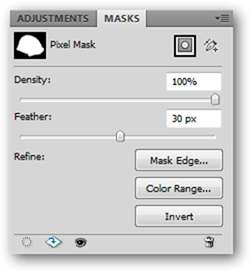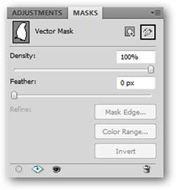 El panel de máscaras también funciona con máscaras vectoriales, pero desafortunadamente, solo permite el ajuste de las opciones de densidad y difuminado.