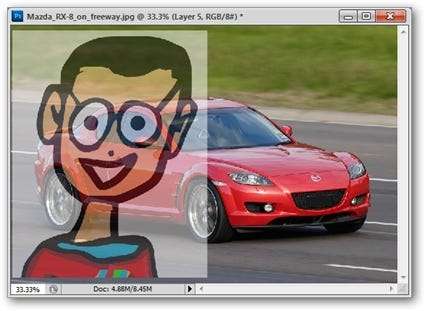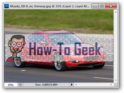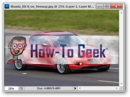 Crea una transparencia de fusión de aspecto atractivo a partir de cualquier capa enmascarada. Simplemente crea una máscara y usa la herramienta Degradado ( Tecla de acceso directo: G ) con mezcla de negro a blanco.