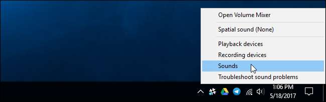 Para abrir el panel de control de sonido, haga clic con el botón derecho en el icono del altavoz en la bandeja del sistema y seleccione "Sonidos". También puede navegar hasta Panel de control> Hardware y sonido> Sonido.