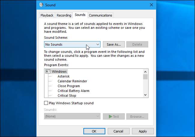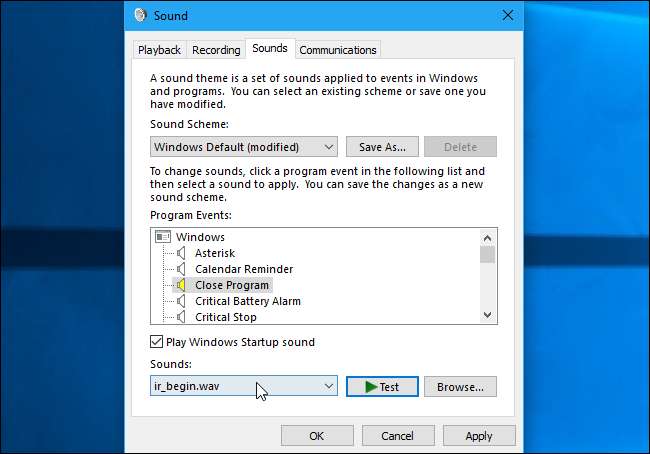 Haga clic en "Aceptar" para guardar los cambios cuando haya terminado. Siempre puede volver aquí y volver a establecer el esquema de sonido en "Predeterminado de Windows" para restaurar los efectos de sonido predeterminados.