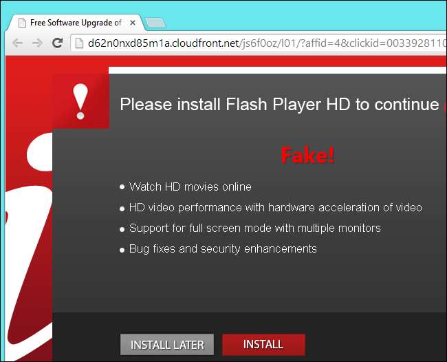 Asegúrese de obtener siempre Flash, su navegador, VLC o cualquier otro software del sitio oficial. Muchos sitios maliciosos también muestran estafas de "necesita actualizar Java" o "necesita actualizar Flash". Si hace clic en sus enlaces de descarga, descargarán software basura en su computadora.