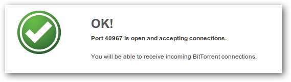 Junto a donde dice "Puerto utilizado para conexiones entrantes", verá su número de puerto, así que cópielo. Necesitamos verificar si ese puerto está abierto, así que deje uTorrent en ejecución, vaya al Comprobador de puertos uTorrent , conecte su puerto y envíe. Si todo está bien, debería ver algo como esto: