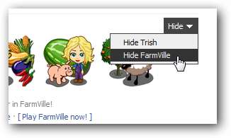 Si tu pareja es completamente adicta a algún juego Flash retrasado en Facebook, probablemente hayas terminado con un montón de mensajes sobre cada pequeño logro del juego. La opción fácil es simplemente hacer clic en Ocultar -> Ocultar aplicación.