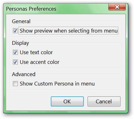 Aquí puede ver las preferencias que están disponibles para la extensión Personas.
