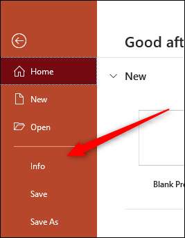 Para proteger su presentación, abrir PowerPoint, haga clic en la pestaña "Archivo", haga clic en "Información" en el panel de la mano izquierda y luego haga clic en la opción "Proteger presentación".