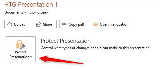 Ahora, en el grupo Proteger Presentation, haga clic en "Proteger la presentación".