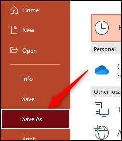 Abra la presentación de PowerPoint, haga clic en "Archivo", y luego haga clic en "Guardar como" en el panel de la izquierda.