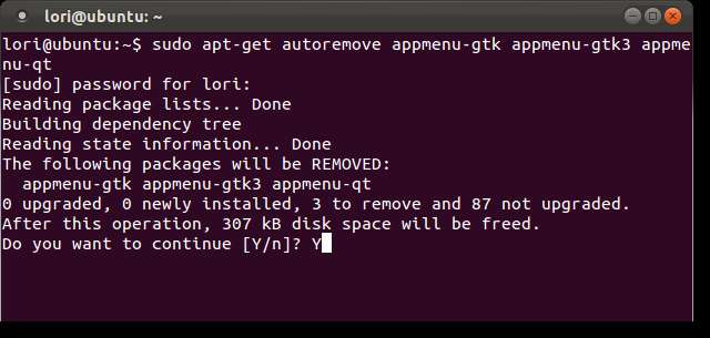 Se lee el estado actual de su sistema y aparece un mensaje que le indica qué paquetes se eliminarán y cuánto espacio en disco se liberará con esta acción. Cuando se le pregunte si desea continuar, escriba "Y" (sin las comillas) y presione Entrar.
