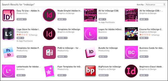 Busque "Indesign" y no encontrará la herramienta de publicación de Adobe, pero encontrará varios paquetes de videos tutoriales con iconos que imitan de cerca a InDesign.