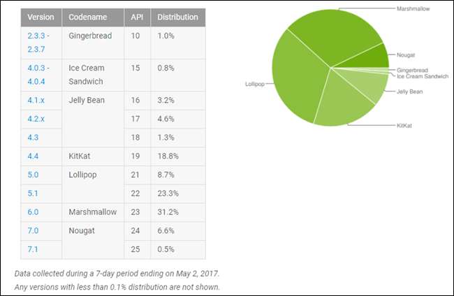 Básicamente, cuando la gente habla de fragmentación, se refiere a la difusión de versiones de Android que todavía se ejecutan en dispositivos "en estado salvaje", porque la tasa de adopción de la nueva versión de Android es mucho más lenta que la de iOS. Tiene sentido, de verdad, hay algunos iPhones, pero de diferentes teléfonos Android, de una variedad de fabricantes, y no todos se actualizan a la última versión al mismo tiempo.