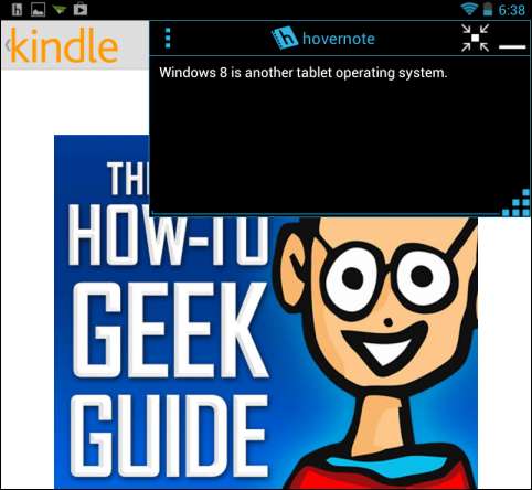 ¿Quiere tomar notas mientras lee una página web, PDF o cualquier otro tipo de documento? Cambiar entre una aplicación para tomar notas y la aplicación principal que estás usando puede ser tedioso. En su lugar, intente hovernote : Una aplicación de notas flotantes que se desplaza sobre las otras aplicaciones que estás usando. Es una aplicación paga, pero no hay ninguna aplicación de notas flotantes gratuita en Google Play en este momento.