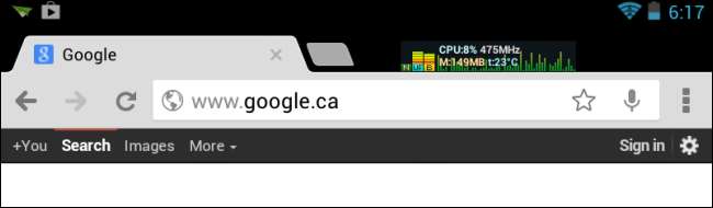 Aplicaciones como Herramienta genial (libre y PerfMon (de pago) le brinda una ventana flotante con información sobre las estadísticas del sistema de su dispositivo Android: uso de recursos y todo lo demás que desee saber. Si te gusta ver estas cosas, puedes verlas todo el tiempo.