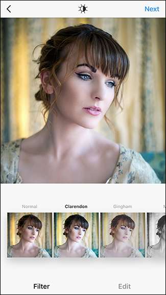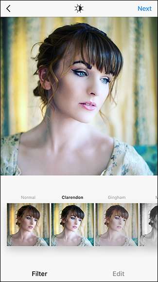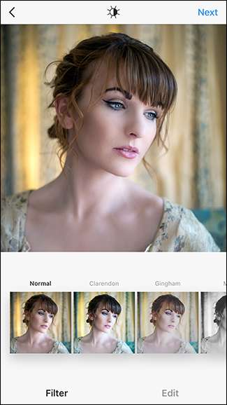 Abra Instagram y seleccione la imagen que desea editar. Voy con este retrato de mi amiga Ali. Toque siguiente para acceder a la pantalla Filtro.