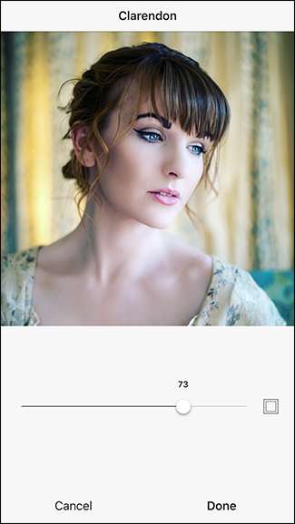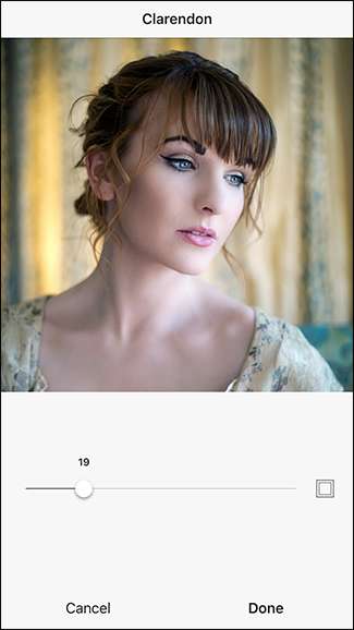 Toque el filtro que desea agregar para aplicarlo. De forma predeterminada, se aplica con toda su potencia. Para reducir la intensidad, simplemente toque el filtro nuevamente y verá aparecer un control deslizante.
