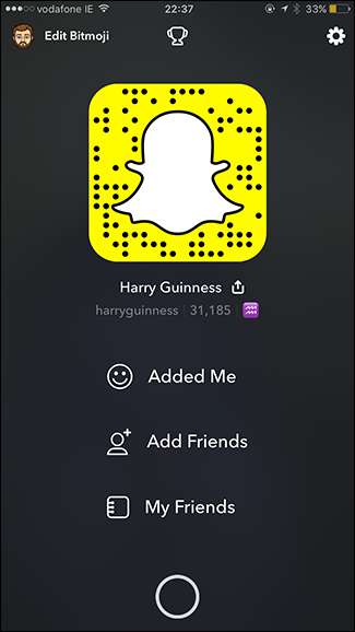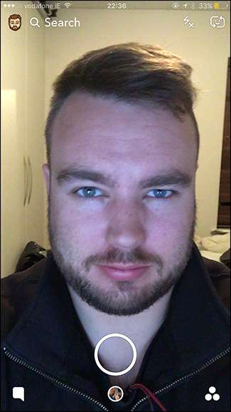 Abre Snapchat y desliza el dedo hacia arriba en la pantalla de la cámara. Toque el icono de engranaje para acceder a la página de configuración.