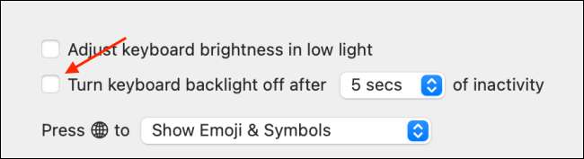 Desde la pestaña "Teclado", haga clic en la marca de verificación junto a la opción "Encienda la luz de fondo del teclado después de 5 segundos de inactividad".