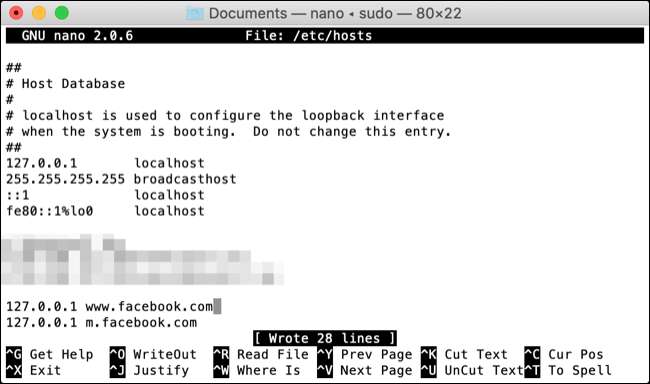 Puede usar el archivo hosts de su sistema para revertirse manualmente las solicitudes de nombre de dominio a otros servidores. Esto se usa a menudo en el desarrollo web para probar sitios web antes de que vayan a vivir. Bloquear un sitio web es tan simple como las solicitudes de dominio de reencaminamiento a 127.0.0.1 o localhost, que es la dirección IP de su propia máquina local. Puede usar 0.0.0.0 o cualquier dirección IP "mala" aquí.