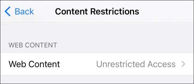 A continuación, toque "Restricciones de contenido", seguido de "contenido web".