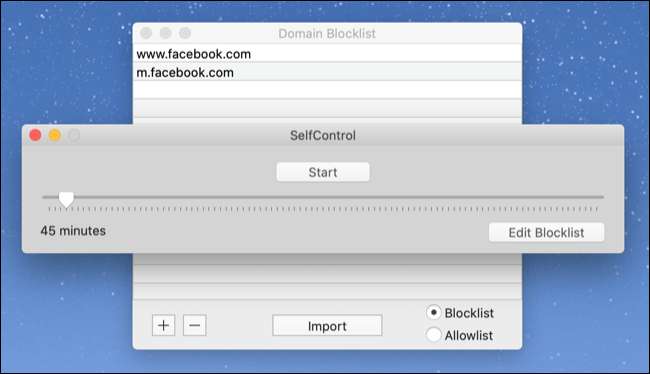 En MacOS, puedes usar la aplicación gratuita. Autocontrol para configurar una lista de bloques y luego bloquear los sitios web por una duración de su elección. Al igual que FOCALFILTER en Windows, es simple y efectivo, pero carece de las funciones de programación avanzadas de una aplicación como Pavo frío (También disponible para MacOS), que cuesta $ 39 .