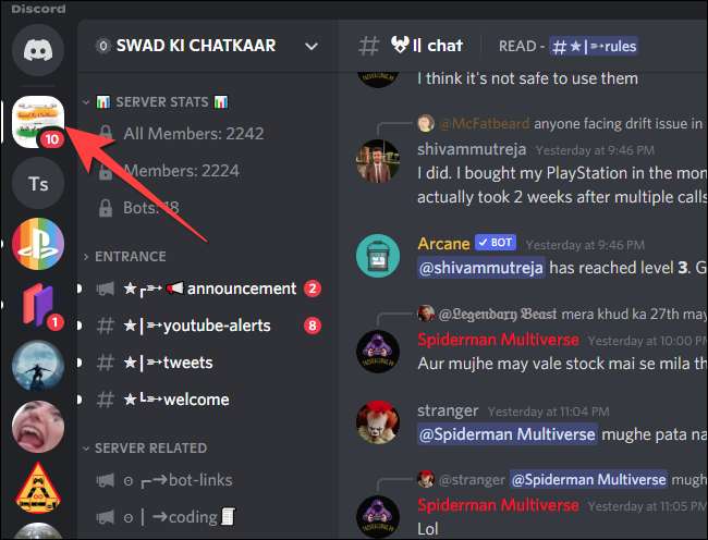 Para empezar, abre el Aplicación de la discordia (Windows, MacOS, IOS, Android, iPados y Linux). Luego, seleccione el servidor de la discordia que se encuentra la persona.