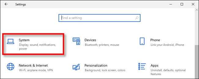 En la ventana "Configuración", haga clic en "Sistema".