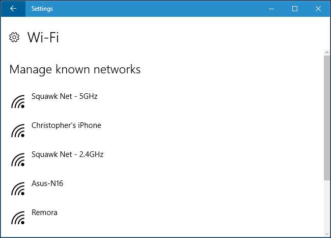 Windows 10 muestra la prioridad de sus redes inalámbricas en la ventana Configuración. Para ver la lista, diríjase a Configuración> Red e Internet> Wi-Fi> Administrar redes conocidas.
