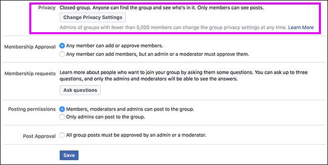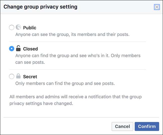 Una cosa a tener en cuenta antes de comenzar: si su grupo tiene menos de 5000 miembros, puede cambiar la privacidad del grupo tanto como desee. Si tiene más de 5000 miembros, siempre puede moverlo a un entorno más privado, pero no puede hacerlo menos privado.