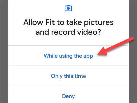 Dado que esto usa la cámara, deberá permitir que Google Fit tome fotos y grabe un video. Dale permiso para proceder.
