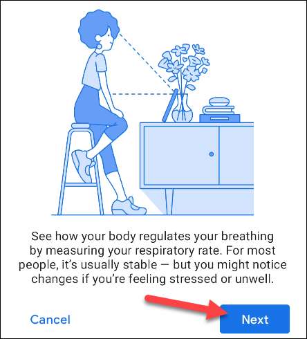 Primero, la pantalla le explicará que usará su cámara para medir su respiración. Toque "Siguiente" para continuar.