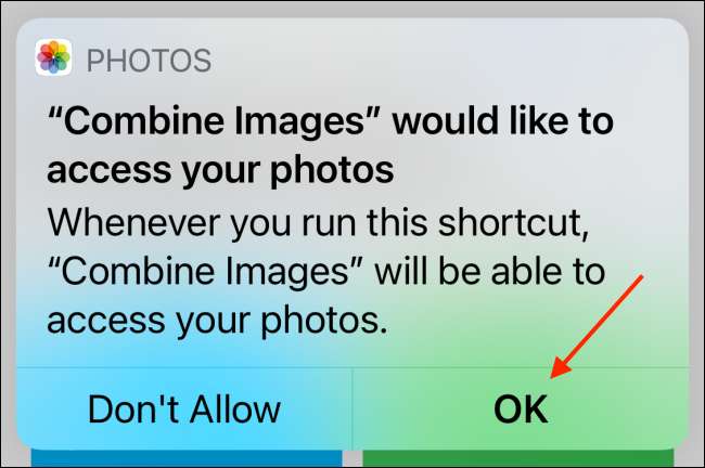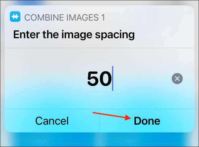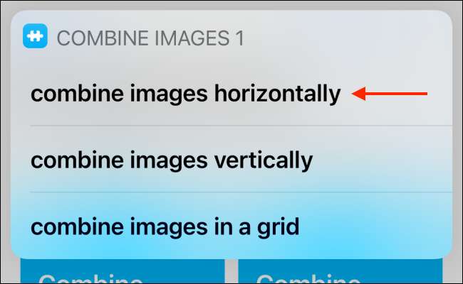 “Combinar imágenes” es uno de estos accesos directos comunidad que se puede descargar desde Internet. Se le permite combinar imágenes desde la aplicación Fotos horizontal o vertical, o incluso como una cuadrícula. Lo bueno de este acceso directo es que le permite definir el orden de las imágenes, así como el espacio entre ellos.