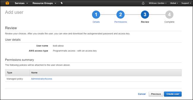 Asegúrese de que su usuario se parezca a la imagen a continuación, luego haga clic en "Crear usuario".