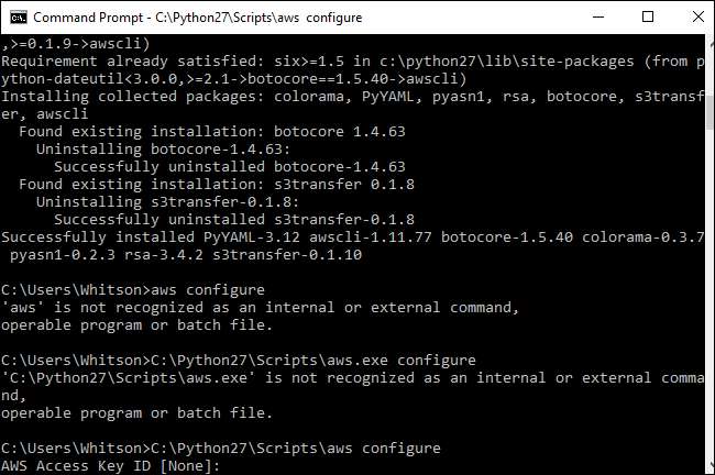 C: \ Python27 \ Scripts \ pip.exe instalar awscli