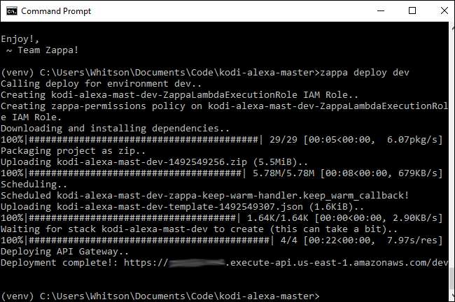 Esto implementará su código en Lambda. Tardará unos minutos, así que déjelo funcionar. Al final, le dará una URL; cópiela, ya que la necesitará en el siguiente paso.