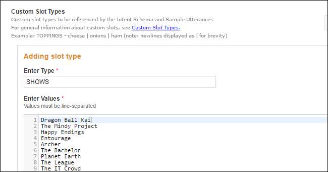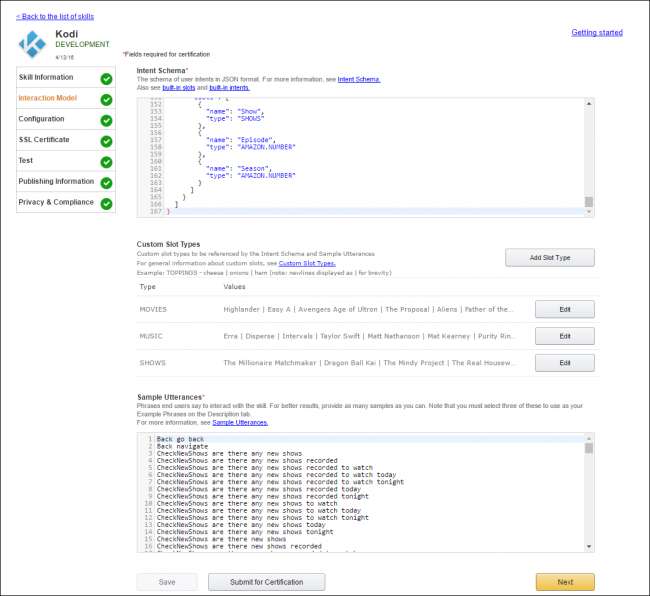 y péguelo en el cuadro "Intent Schema" en el sitio web de Amazon Developer. Repita este proceso con el