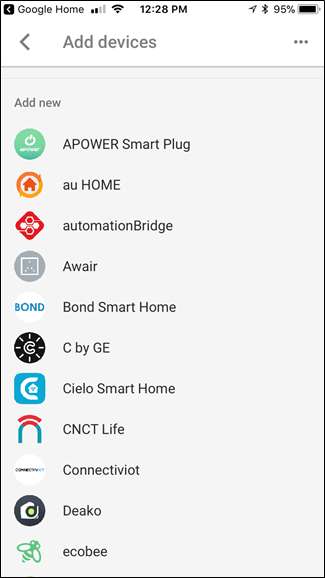 Aparecerá una lista de todos los productos smarthome compatibles con Google Home; simplemente desplácese hasta encontrar el que está tratando de agregar. Debería redirigirle a la página de inicio de sesión de ese producto en particular.