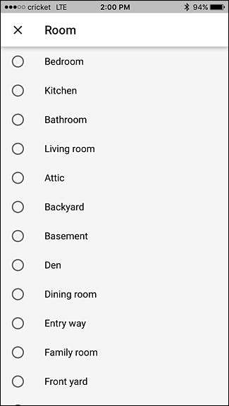 Seleccione una habitación de la lista. Así es como se llamará tu habitación y como deberás llamarla cuando le digas a Google Home que controle tu dispositivo. También puedes desplazarte hacia abajo y elegir "Agregar habitación personalizada", donde puedes nombrarla como quieras siempre que sea algo que Google Home pueda reconocer cuando lo digas.