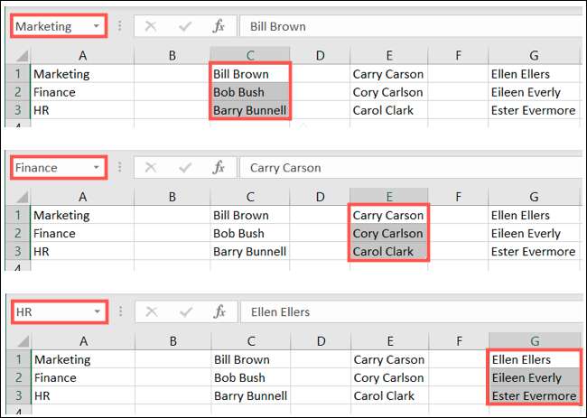 Usando nuestro ejemplo, nombraremos a nuestros grupos con los departamentos en nuestra primera lista: Marketing, Finanzas y HR.