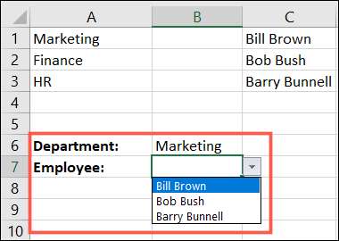 Para este tutorial, usaremos departamentos en nuestra empresa para la primera lista desplegable, y luego los empleados en cada departamento para la segunda lista.
