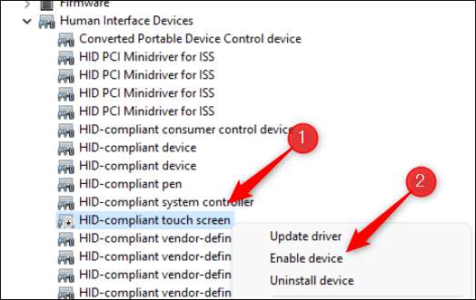 Si desea retenerlo más tarde, simplemente haga clic con el botón derecho en la pantalla táctil compatible con HID en el Administrador de dispositivos y luego haga clic en "Habilitar dispositivo" en el menú contextual.