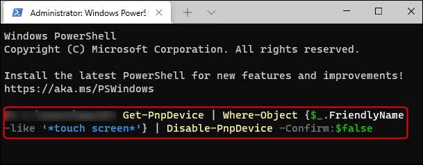 Get-PNPDevice | Donde-objeto {$ _. Friendlyname -like '* Pantalla táctil *'} | Deshability-PNPDevice -Confirm: $ FALSO