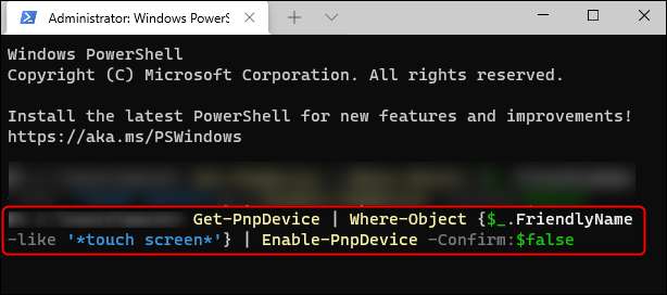 Get-PNPDevice | Donde-objeto {$ _. Friendlyname -like '* Pantalla táctil *'} | Enable-PNPDevice -Confirm: $ falso