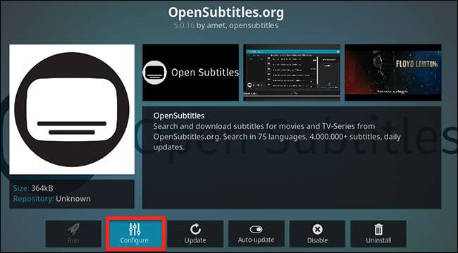 Alternativamente, puede presionar "C" mientras el complemento está seleccionado para que aparezca la configuración. Sin embargo, no puedes descargar subtítulos con este complemento sin una cuenta, así que no te saltes este paso. OpenSubtitles es una de las colecciones de subtítulos más completas de la web, así que vale la pena.