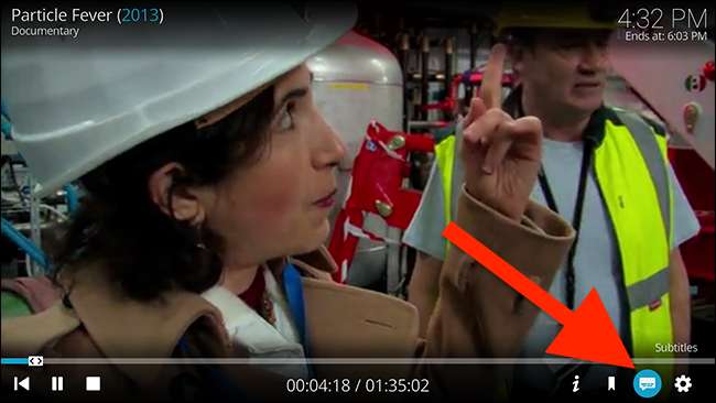 Ahora que ha instalado uno o más complementos de subtítulos, es hora de probar la funcionalidad. Comience a reproducir cualquier película o programa de televisión, luego presione el botón Entrar para que aparezcan los controles de reproducción. Siéntete libre de pausar lo que estés viendo, luego usa la tecla derecha para seleccionar el botón Subtítulo: