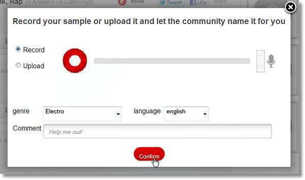 Pero, ¿y si la canción que escuchaste fuera instrumental, una pista electrónica? O incluso más, una canción en un idioma que ni siquiera entiendes. Para eso, tenemos que ir a manual. Ya sea que recuerdes algo o no, es posible que recuerdes la melodía de la canción, y eso es lo que usaremos. ¿Recuerdas midomi? En realidad, estaba destinado a ser utilizado con voces humanas reales, y por eso decía "canta o tararea". Así que ahora puedes dirigirte a midomi nuevamente, y esta vez, asegúrate de tener tu micrófono habilitado (en lugar de mezcla estéreo). Tenga confianza, necesita encontrar una canción y asegúrese de poder hacerlo. Canta la canción, deja que midomi haga la búsqueda y, con suerte, te dará sugerencias basadas en lo que cantaste. Pero vale la pena mencionar que no funciona todo el tiempo , por lo que hay una solución. Dirigirse a WatZatSong.com . Es una comunidad de entusiastas de la música que pueden identificar la mayoría de las canciones y pistas. Así que visite el sitio, cree una cuenta y grabe la canción.