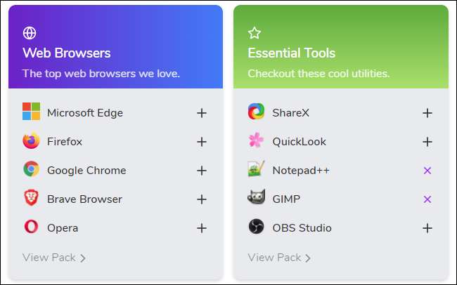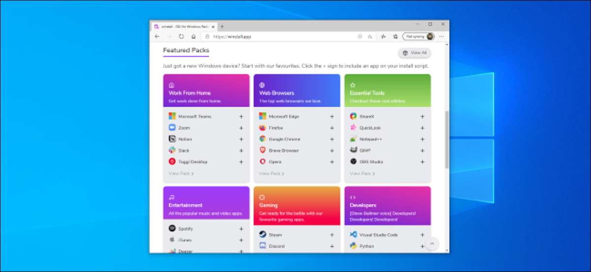 Con el Administrador de paquetes de Windows instalado en su PC, diríjase a el sitio web de winstall . Use el cuadro de búsqueda o busque las aplicaciones populares y destacadas, agregando las aplicaciones que desee en su script de instalación.