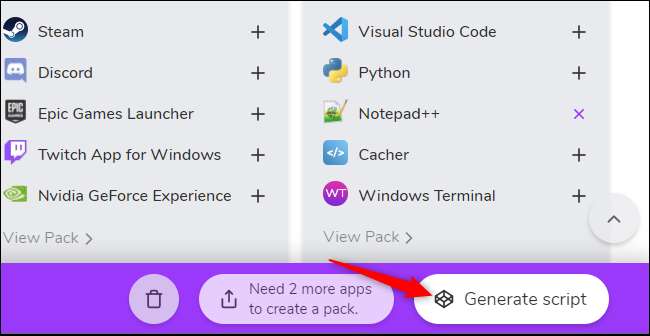 Una vez que haya elegido todas sus aplicaciones favoritas en el sitio web, haga clic en el botón "Generar script" en la parte inferior de la página.