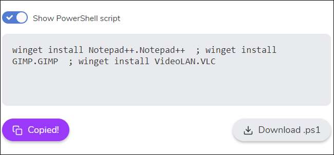 También puede descargar un archivo .bat o .ps1 si lo desea. Este es un archivo de script Eso ejecutará automáticamente el comando que se muestra en la página cuando haga doble clic en él.