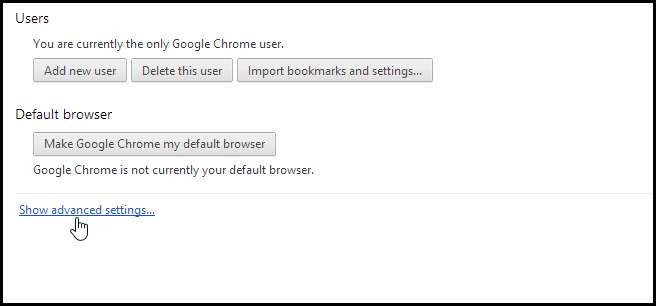 Cuando se abra la página de Configuración, haga clic en el enlace Mostrar configuración avanzada cerca de la parte inferior de la página.