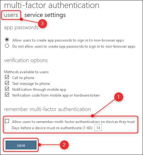 Si realiza algún cambio en esta o en cualquier otra configuración, haga clic en "Guardar" en la parte inferior del panel para guardar los cambios, luego haga clic en "usuarios" para volver a activar MFA.